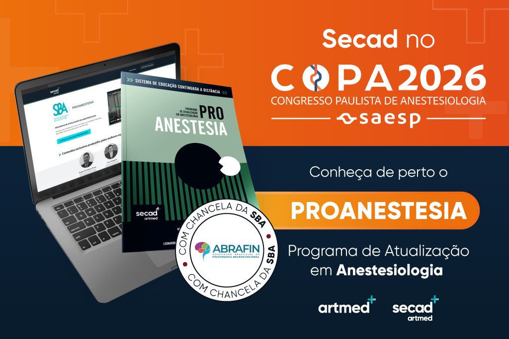 No COPA SAESP 2026, o Secad reforça seu compromisso com a educação continuada em saúde e convida os congressistas a conhecerem de perto seu programas de atualização na especialidade: o PROANESTESIA. O Secad é uma plataforma de atualização profissional, parte do ecossistema da Artmed, voltada à formação continuada de médicos e profissionais da saúde. Com uma metodologia estruturada, conteúdo baseado em evidências e autoria de especialistas reconhecidos, o Secad desenvolve programas que acompanham a evolução