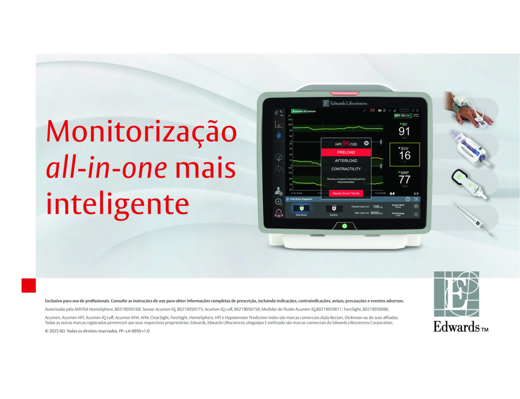 Com presença garantida no COPA SAESP 2025, a Edwards apresentará o novo software da plataforma HemoSphere, que inclui ferramentas inovadoras como a atualização de dados de débito cardíaco em apenas 20 segundos usando o cateter Swan-Ganz, auxílio na identificação das possíveis causas de dessaturação de oxigênio tissular, e o novo Acumen Assisted Fluid Management (AFM), um software que permite a otimização do manejo de fluido, reconhecendo continuamente padrões de fluido-responsividade.